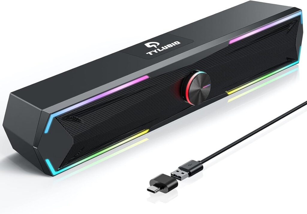 - Stereo Sound - The PC speaker uses upgraded 2x5W technology to deliver the clear sound. The soundbar speaker can enhance your listening experience when you enjoying indoor movies, videos, music and games.